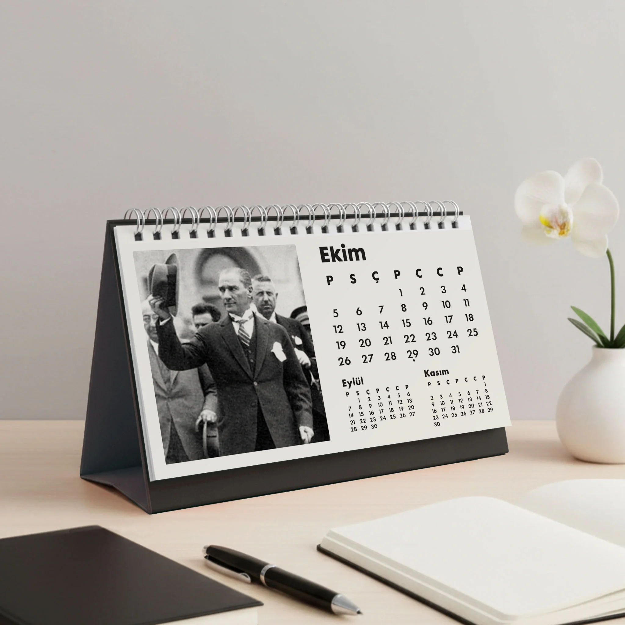 Atatürk masa takvimi, 2026 masa takvimi, Atatürk takvim, siyah beyaz takvim, Öğretmenler Günü hedilesi, minimalist masa takvimi, Cumhuriyet temalı takvim, Atatürk hediyesi, ofis masa takvimi, Atatürk fotoğraflı takvim, anlamlı hediye, masaüstü takvim, spiral takvim, Atatürk sevenler için hediye, Türk bayrağı temalı takvim, nostaljik takvim, yeni yıl hediyesi 2026, Atatürk koleksiyon ürünü, özel tasarım takvim