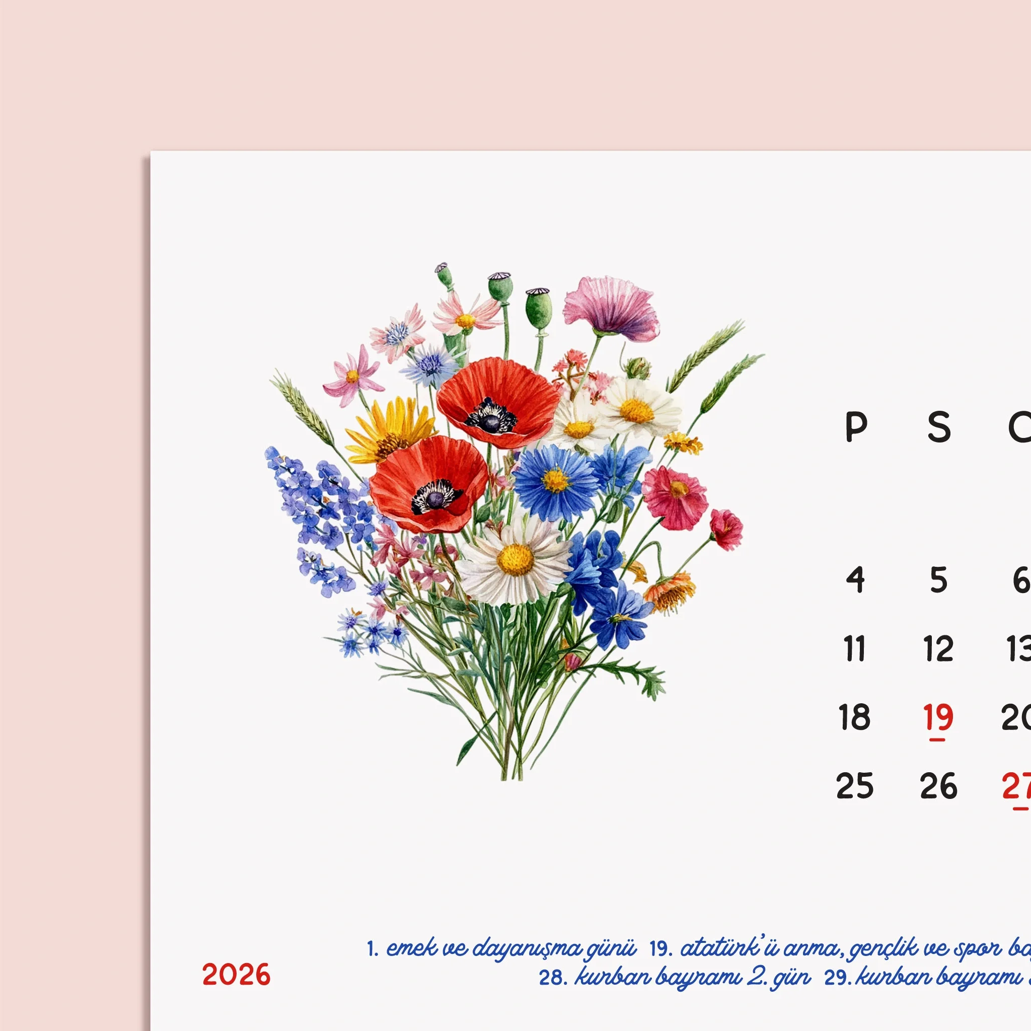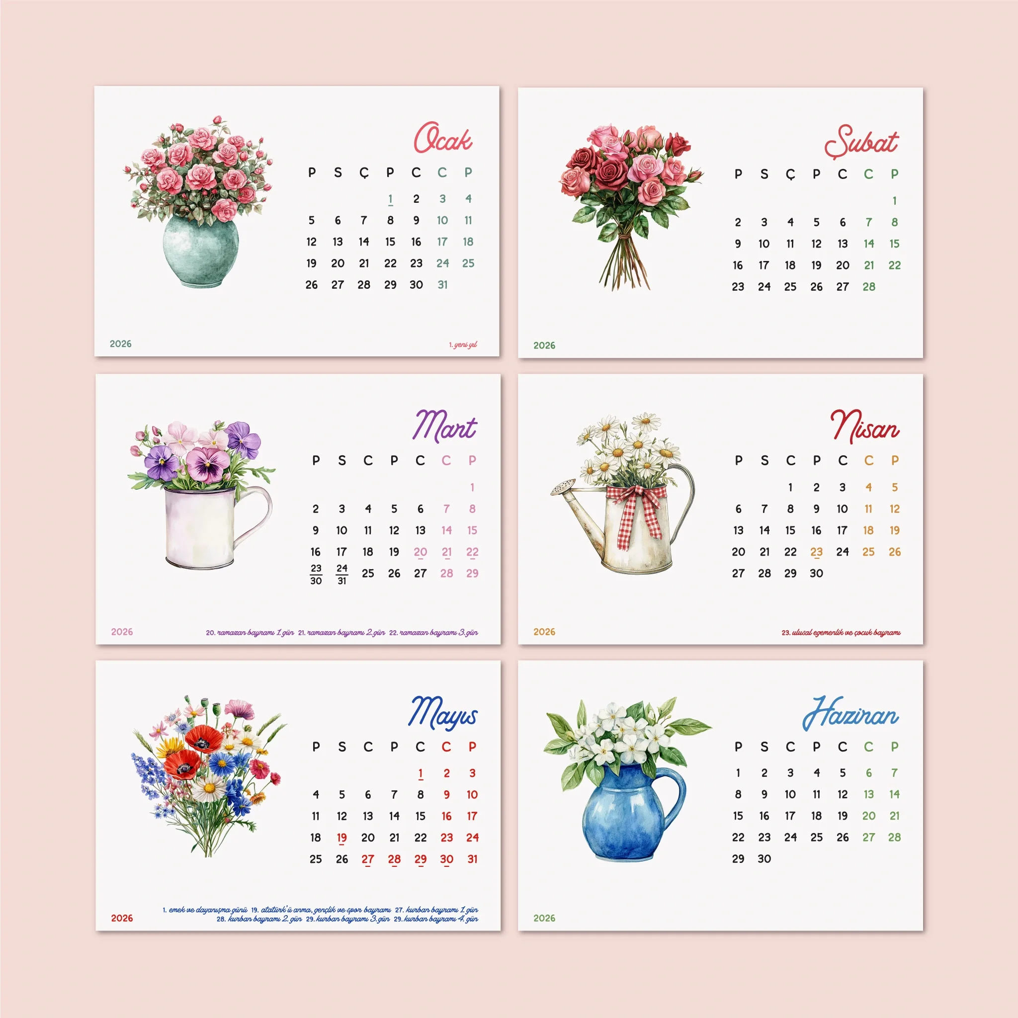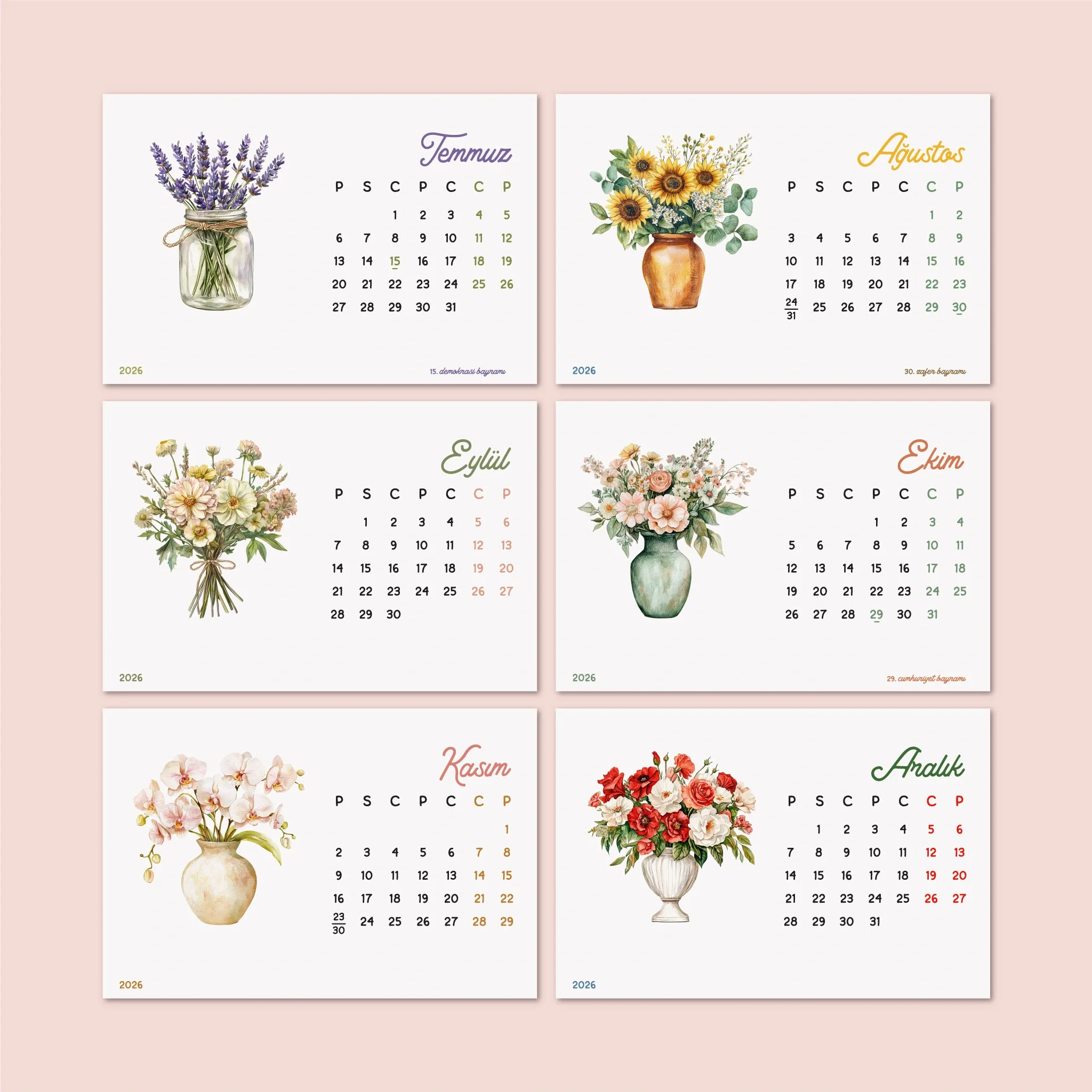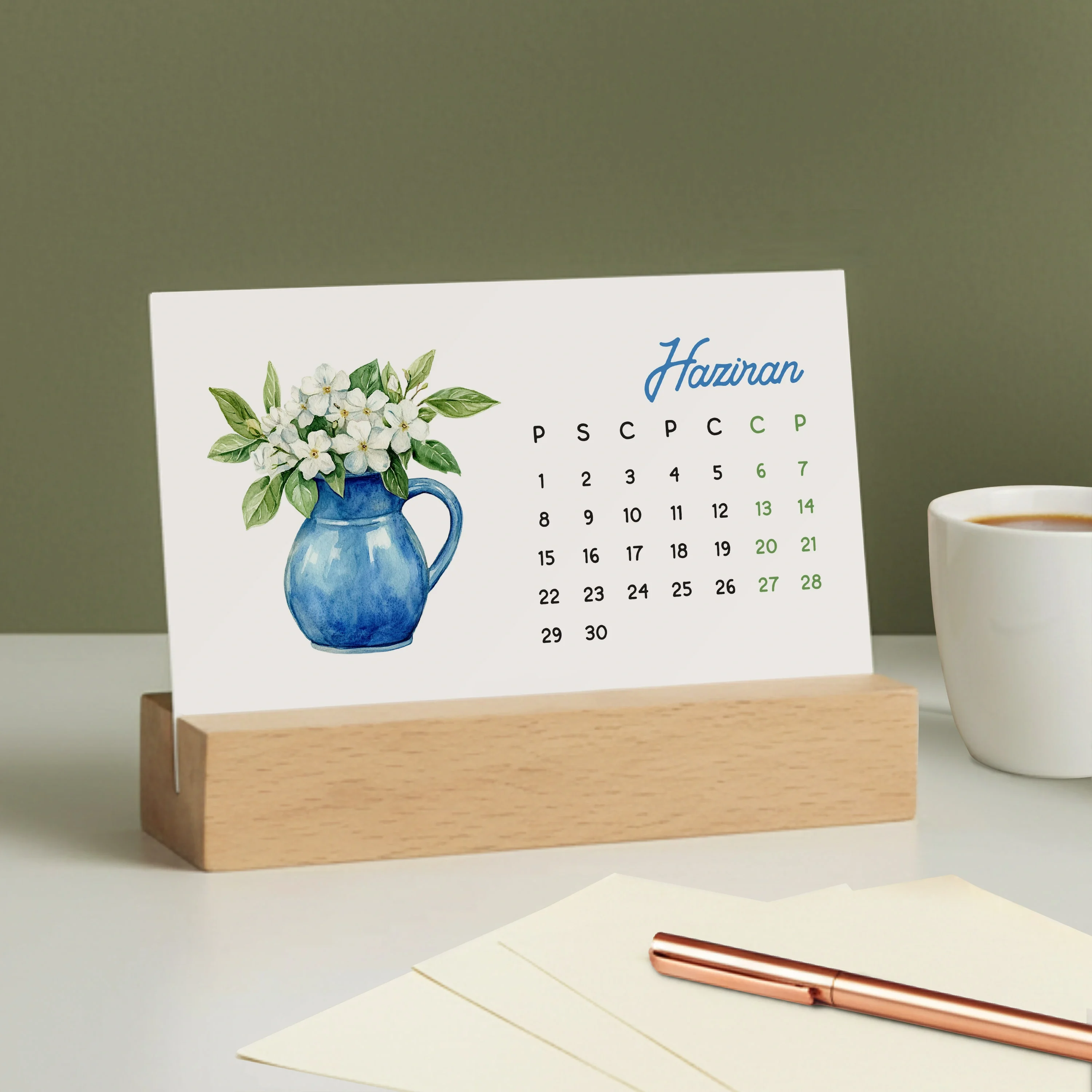 2026 Takvimi, Çiçekli takvim, masa takvimi, Ahşap Ayaklı Takvim, estetik masa takvimi, Mevsim Çiçekleri Takvimi, hediyelik takvim, çiçek illüstrasyonlu takvim, vazo çiçek tasarımı, buket çiçek takvimi, yeni yıl hediyesi, Masaüstü Takvim, Zamansız hediye