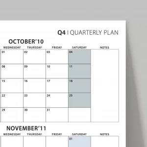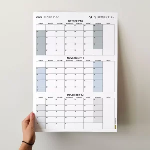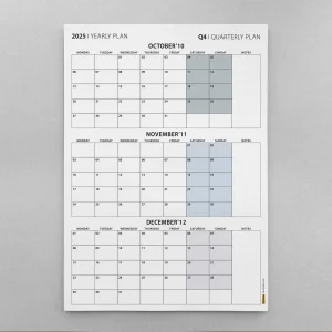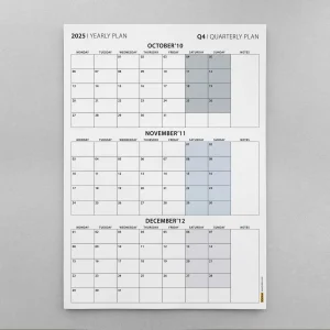 Üç Aylık Planlayıcı 2026 Duvar Takvimi, Ekim - Aralık 2026, 90 Günlük Planlama, Yılın Dördüncü Çeyreği Takvimi - 35x50cm