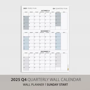 Amerikan Standardı Takvim, Üç Aylık Planlayıcı 2026 Duvar Takvimi, Ekim - Aralık 2026, 90 Günlük Planlama, Yılın Dördüncü Çeyreği Takvimi, Gri Takvim, Pazar Günü Başlangıçlı Takvim - 35x50cm