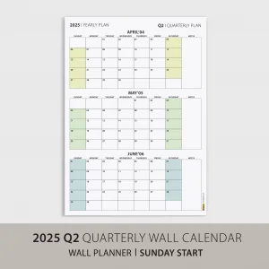 Amerikan Standardı Takvim, Üç Aylık Planlayıcı 2026 Duvar Takvimi, Nisan - Haziran 2026, 90 Günlük Planlama, Yılın İkinci Çeyreği Takvimi, Yeşil Takvim, Pazar Günü Başlangıçlı Takvim - 35x50cm