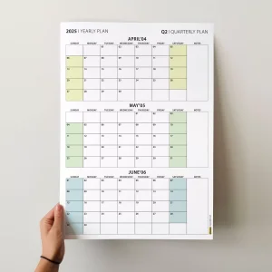 Üç Aylık Planlayıcı 2026 Duvar Takvimi, Nisan - Haziran 2026, 90 Günlük Planlama, Yılın İkinci Çeyreği Takvimi - 50x70cm