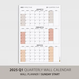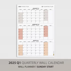 Amerikan Standardı Takvim, Üç Aylık Planlayıcı 2026 Duvar Takvimi, Ocak - Mart 2026, 90 Günlük Planlama, Yılın Birinci Çeyreği Takvimi, Kahverengi, Pazar Günü Başlangıçlı Takvim - 35x50cm