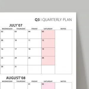 Üç Aylık Planlayıcı 2026 Duvar Takvimi, Temmuz - Eylül 2026, 90 Günlük Planlama, Yılın Üçüncü Çeyreği Takvimi - 35x50cm