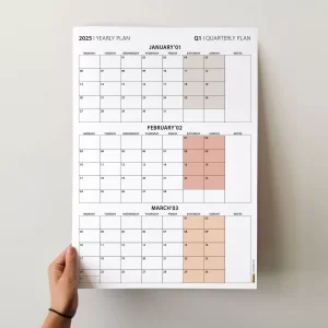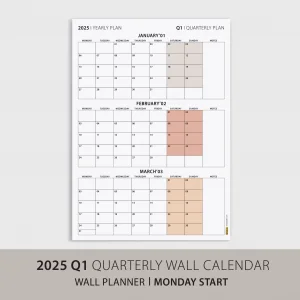 Üç Aylık Planlayıcı 2026 Duvar Takvimi, Ocak - Mart 2026, 90 Günlük Planlama, Yılın Birinci Çeyreği Takvimi - 35x50cm