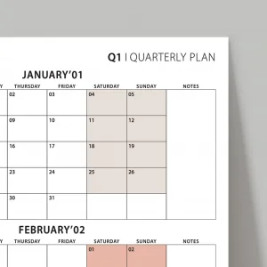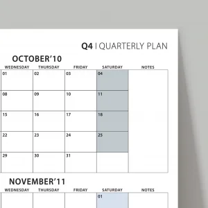 Tarihsiz Üç Aylık Duvar Takvimi, Zamansız Takvim, Dördüncü Çeyrek 90 Günlük Takvim, 90 Günlük Plan - 33x48cm