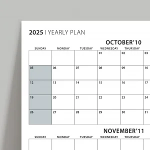 Amerikan Standardı Takvim, Üç Aylık Planlayıcı 2025 Duvar Takvimi, Ekim - Aralık 2025, 90 Günlük Planlama, Yılın Dördüncü Çeyreği Takvimi, Gri Takvim, Pazar Günü Başlangıçlı Takvim - 50x70cm