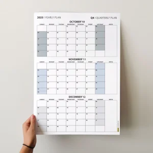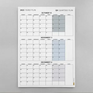Üç Aylık Planlayıcı 2025 Duvar Takvimi, Ekim - Aralık 2025, 90 Günlük Planlama, Yılın Dördüncü Çeyreği Takvimi - 35x50cm