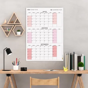 Üç Aylık Planlayıcı 2025 Duvar Takvimi, Temmuz - Eylül 2025, 90 Günlük Planlama, Yılın Üçüncü Çeyreği Takvimi - 35x50cm