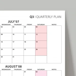 Tarihsiz Üç Aylık Duvar Takvimi, Zamansız Takvim, üçüncü Çeyrek 90 Günlük Takvim, 90 Günlük Plan - 50x70cm