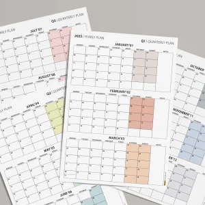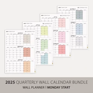 Üç Aylık Planlayıcı 2025 Duvar Takvimi Seti, 90 Günlük Planlama, 2025 Duvar Planlayıcı Takvim, Boho Renkler, 12 Hafta Planlayıcı Takvimi - 70x100cm