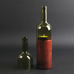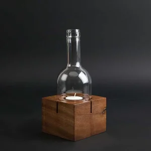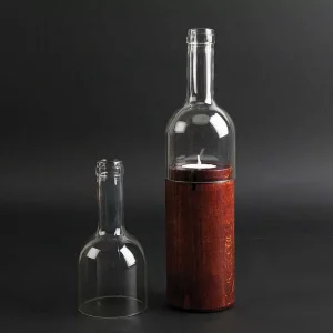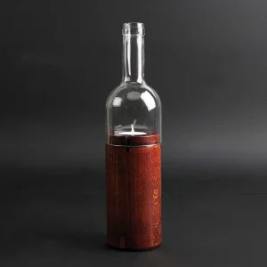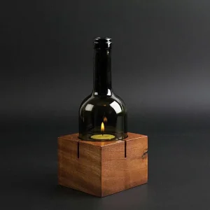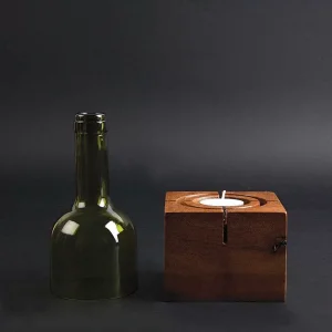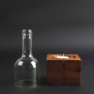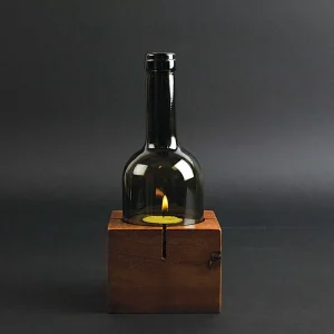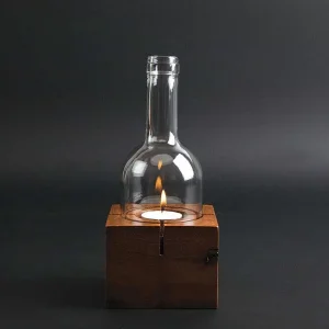 Beyaz Ahşap Tabanlı Şişe Kandili Mum