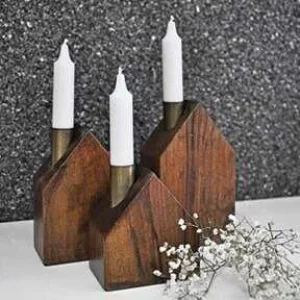 Beyaz Ahşap Tabanlı Kare Kandili Mum