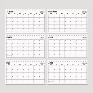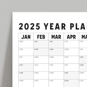 2025 Yıllık Planlayıcı Duvar Takvimi, Aylık Planlayıcı Aile Takvimi, Siyah Beyaz Yatay Takvim
