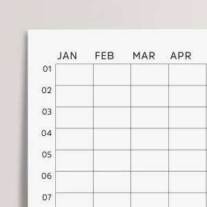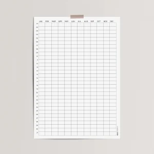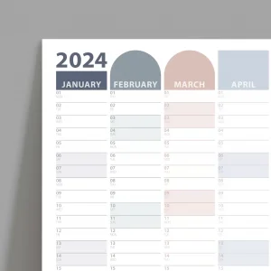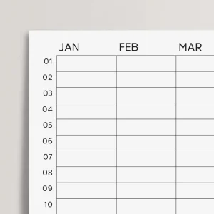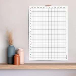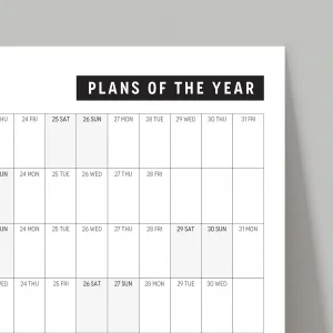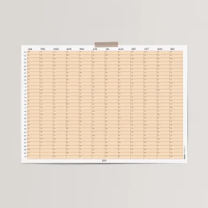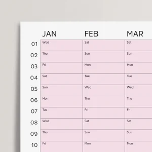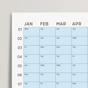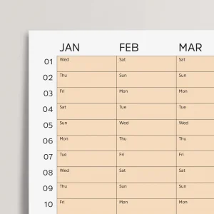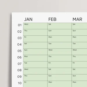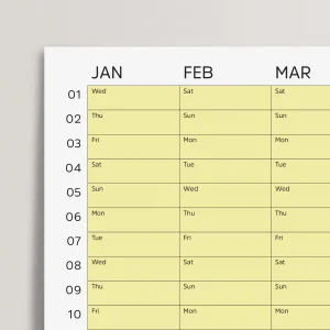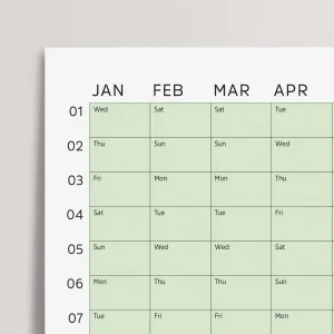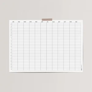 Zamansız Yıllık Planlayıcı Takvim, Sürekli Takvim, Tarihsiz Yıllık Planlayıcı Duvar Takvimi, Yatay Planlayıcı