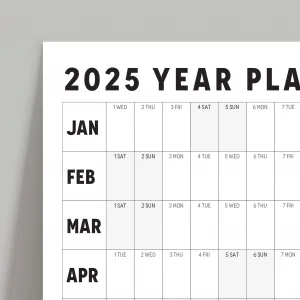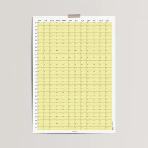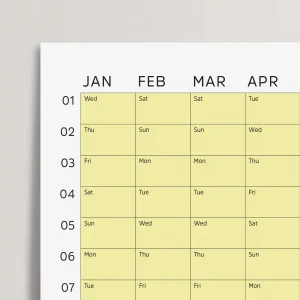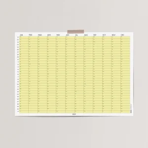 2025 Yıllık Takvim Planlayıcı, Planlayıcı Duvar Takvimi, Pastel Sarı Renk