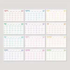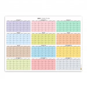2025 Yıllık Planlayıcı Duvar Takvimi, Rengarenk Pastel Renkler, Yatay Planlayıcı Takvim