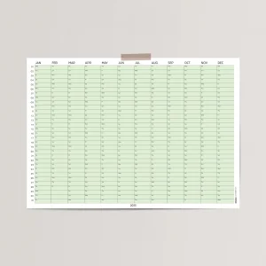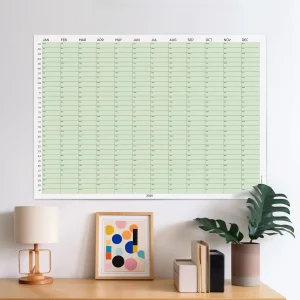2025 Yıllık Takvim Planlayıcı, Planlayıcı Duvar Takvimi, Pastel Yeşil Renk