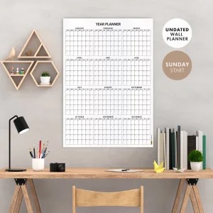 Amerikan Standardı Zamansız Yıllık Planlayıcı Takvim, Pazar Günü Başlangıçlı, Sürekli Takvim, Tarihsiz Yıllık Planlayıcı Duvar Takvimi, Zamansız Takvim