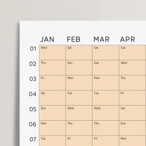 2025 Yıllık Takvim Planlayıcı, Planlayıcı Duvar Takvimi, Pastel Somon Turuncu Renk