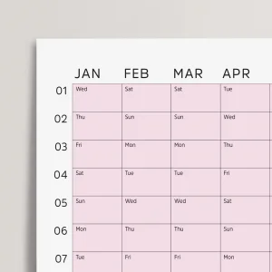 2025 Yıllık Takvim Planlayıcı, Planlayıcı Duvar Takvimi, Pastel Pembe Renk
