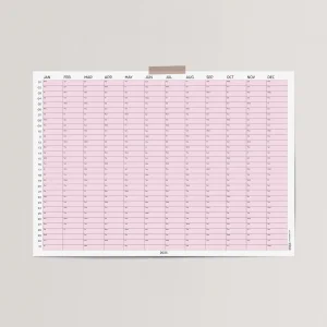 2025 Yıllık Takvim Planlayıcı, Planlayıcı Duvar Takvimi, Yatay, Pastel Pembe Renk