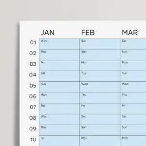 2025 Yıllık Takvim Planlayıcı, Planlayıcı Duvar Takvimi, Pastel Mavi Renk