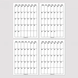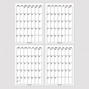 Zamansız Yıllık Planlayıcı Takvim, Sürekli Takvim, Tarihsiz Yıllık Planlayıcı Duvar Takvimi, Zamansız Takvim