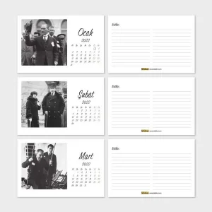Atatürk Fotoğraflı 2025 Masa Takvimi - Siyah Beyaz