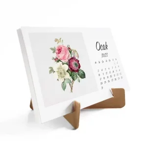 2025 Çiçekli Takvim, Ahşap Takvim, Çiçek Resimli Masa Takvimi, 2025 Takvim