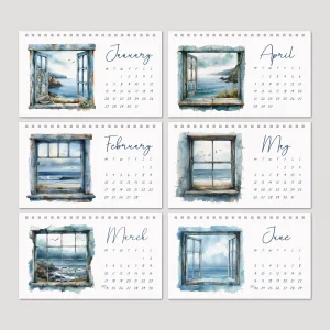 Deniz Manzaralı 2025 Masa Takvimi, Denize Açılan Pencereler Masa Takvimi, Okyanus Manzaralı Takvim, Window Ocean 2025 Desk Calendar