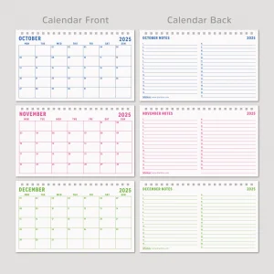 2025 Aylık Planlayıcı Duvar Takvimi, 33X48 cm & A4 Spiralli Takvim, Organizer Takvim, Gökkuşağı Renkleri