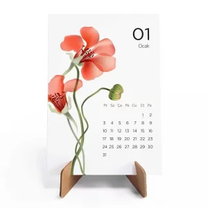 Mevsim Çiçekli Takvim 2025 Masa Takvimi Kraft
