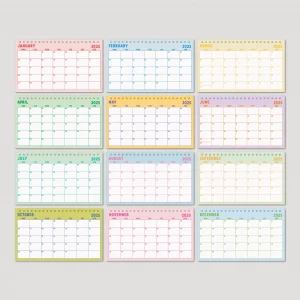 2025 Yıllık Planlayıcı Duvar Takvimi, Rengarenk Pastel Renkler