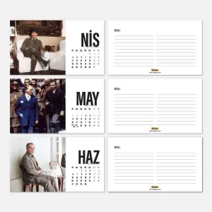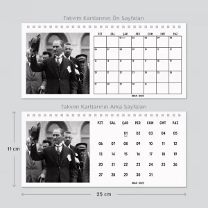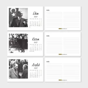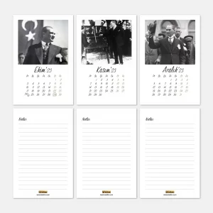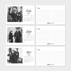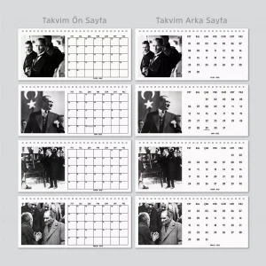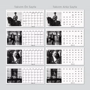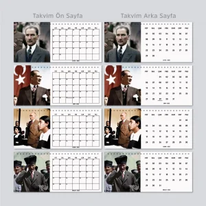 2026 Atatürk Fotoğraflı Takvim, Aylık Planlayıcı Takvim, Çift Taraflı Takvimi