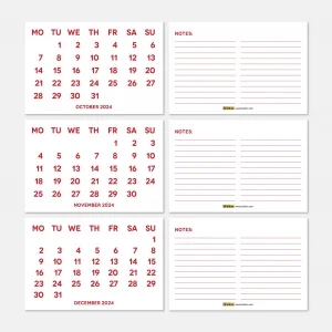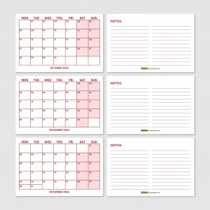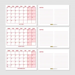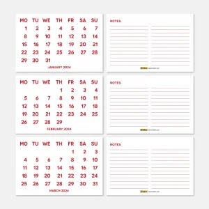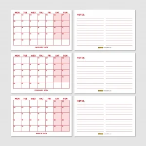 Kırmızı Renkli Aylık Planlama 2026 Takvim, 2026 Masa Takvimi, Red Color Monthly Planner Calendar