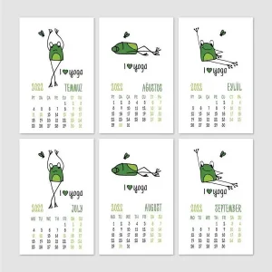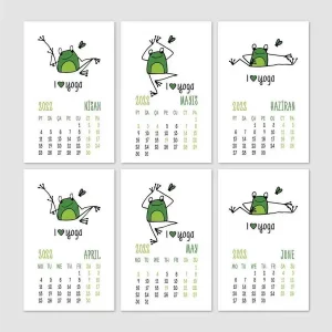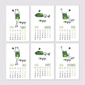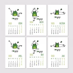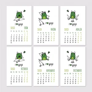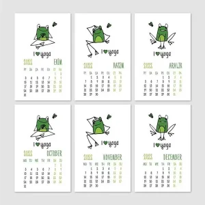 Kurbağa Konseptli 2026 Yoga Takvimi, 2026 Yoga Takvim, Yeşil Kurbağa Masa Takvimi