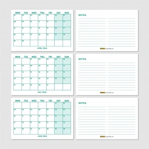 Yeşil Renkli Aylık Planlama 2026 Takvim, 2026 Masa Takvimi, Green Color Monthly Planner Calendar