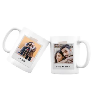 Sevgiliye Özel Pola Kart Fotoğraflı Kupa Bardak Aşk