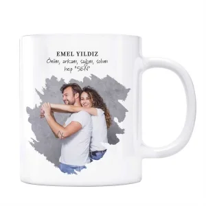 Sevgiliye Özel Mesajlı Fotoğraflı Kupa Önüm Arkam Sen