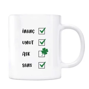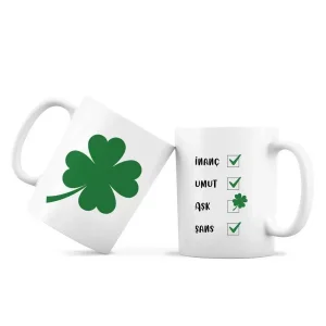 Dört Yapraklı Yonca Kupa Bardak İnanç Umut Aşk Şans